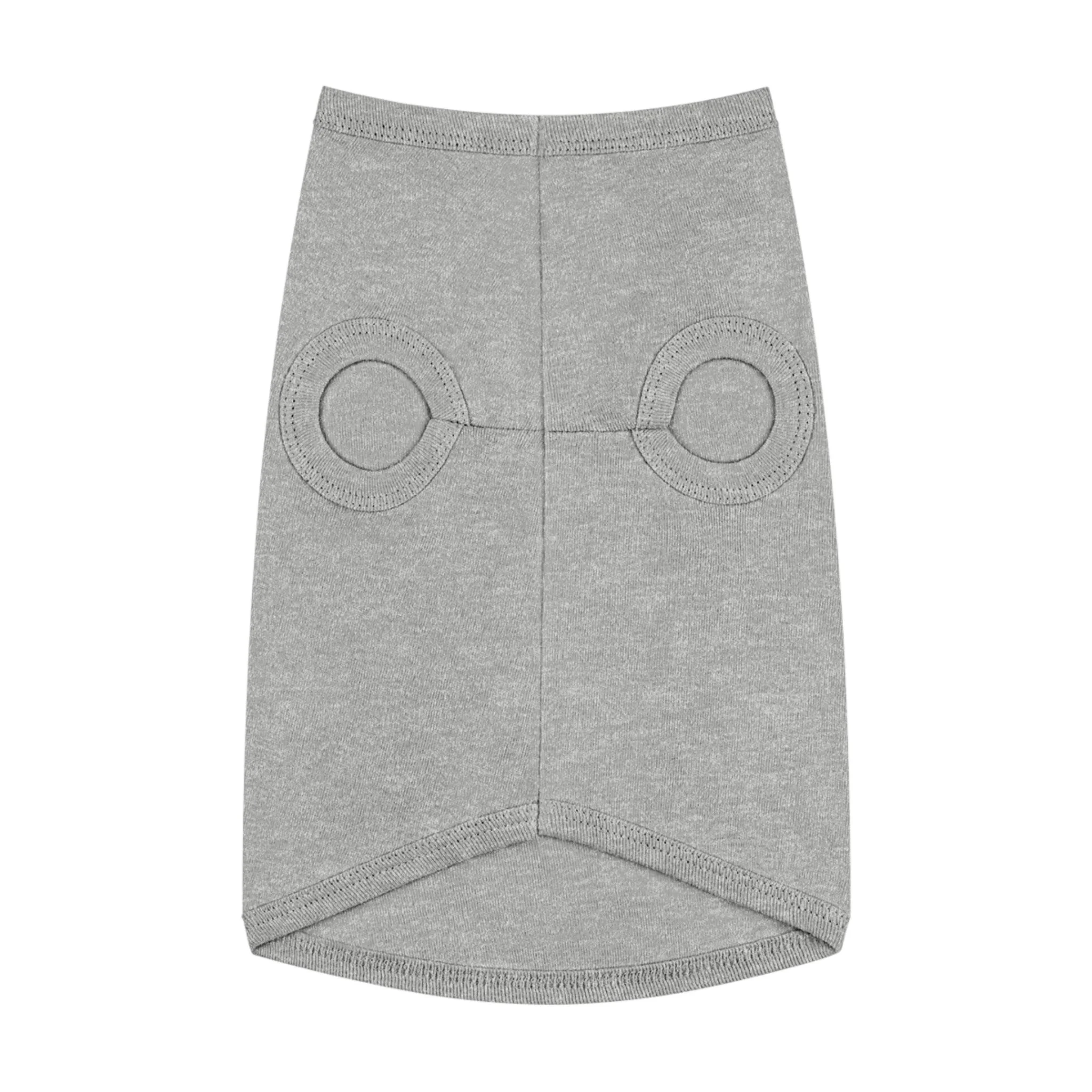 A soft, stretch-knit pet tank designed to slip on easily and wear all day. The fabric feels smooth against fur and holds printed artwork with crisp detail — here shown with an elegant gold-winged crown logo. The ribbed neckline and armholes keep the tank in place during walks and play, while the double-needle binding preserves clean lines wash after wash. Sized for small to medium breeds, the tank has a tapered rear hem for comfortable movement and a neat, finished look. This piece adds a touch of boutique style to everyday outings or post-grooming photoshoots.