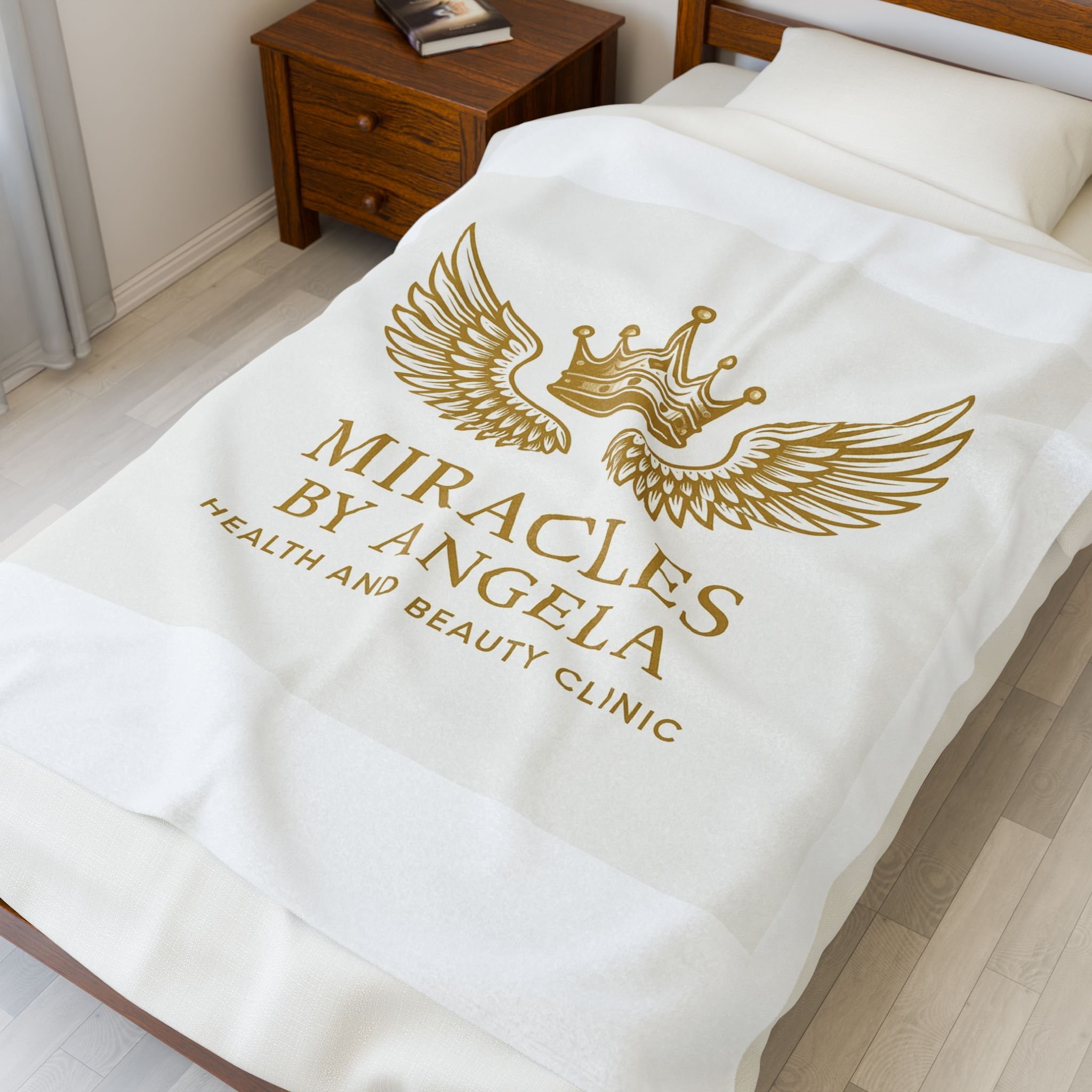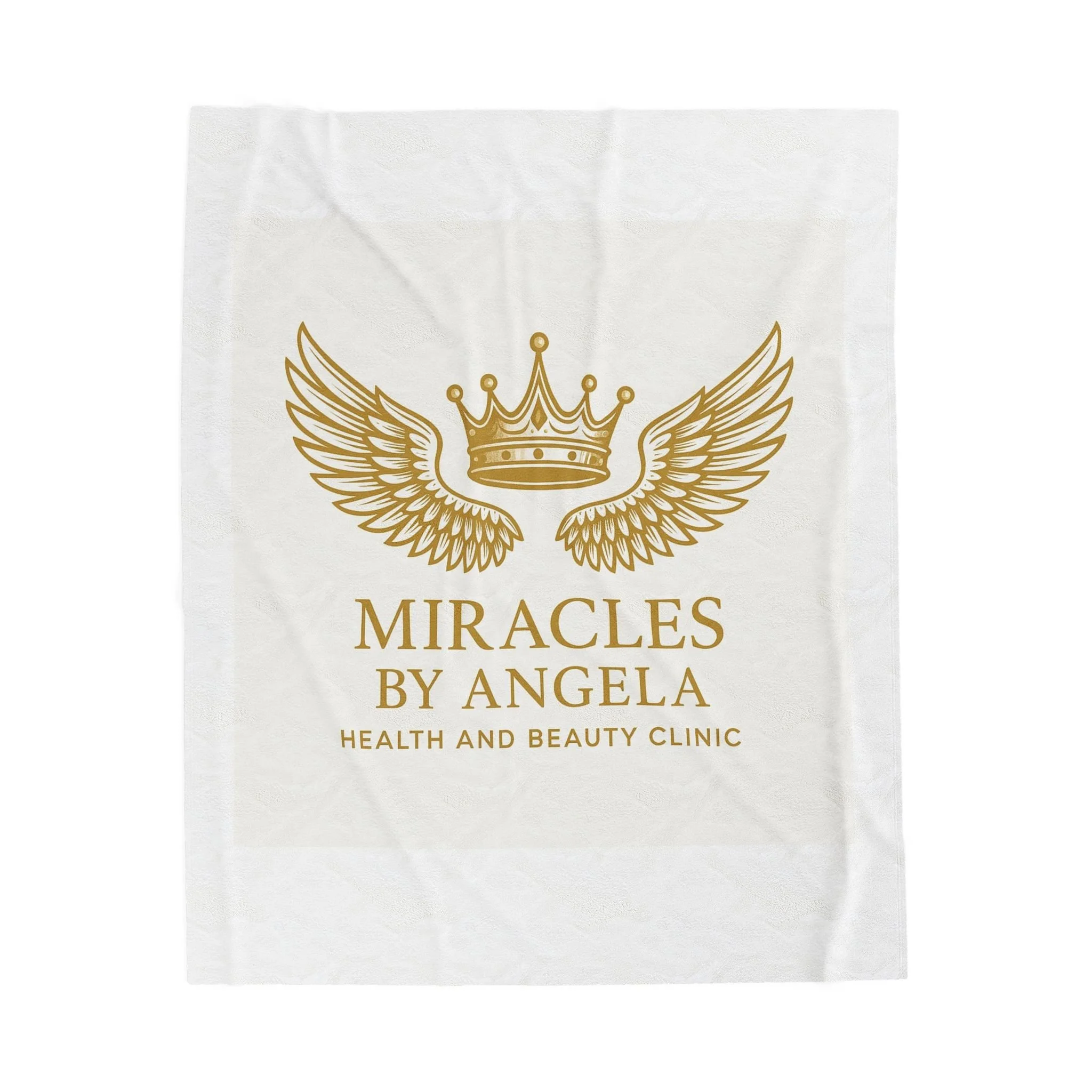 Velveteen Plush Blanket — "Miracles by Angela" Gold Crown & Wings Luxury Throw (Spa/Beauty Clinic Gift)